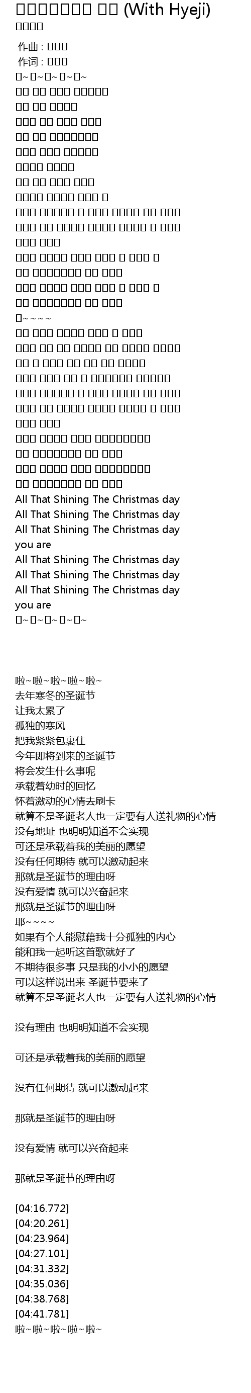 | [03:20.273] | 산타가 아니더라도 꼭 누군가 봐줬으면 하는 마음에 |