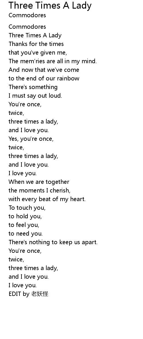 | [00:01.58] | Three Times A Lady |
