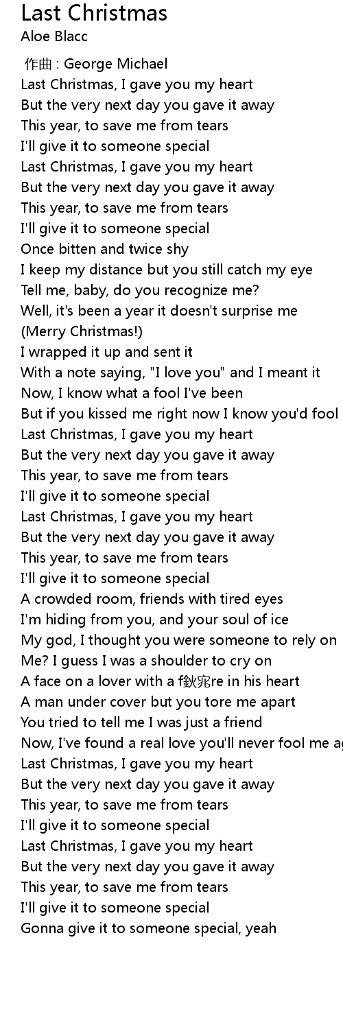 | [00:58.423] | Last Christmas, I gave you my heart |