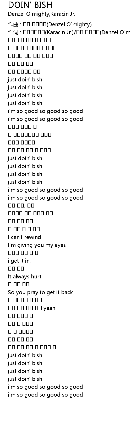 | 作词 : 카라신주니어(Karacin Jr.)/덴젤 오마이티(Denzel O`mighty) | |