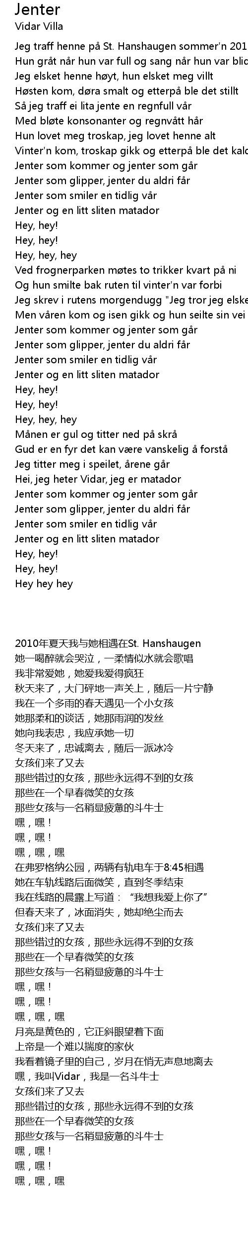 | [00:09.600] | Jeg traff henne p St. Hanshaugen sommer' n 2010 |