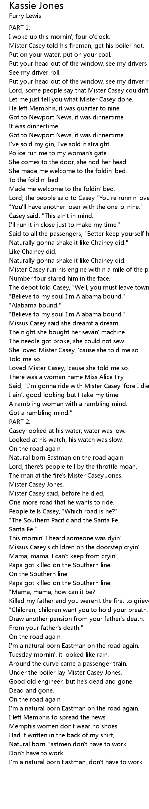 Said, "I'm gonna ride with Mister Casey 'fore I die. |