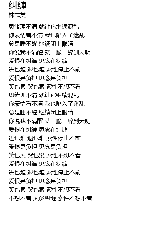 | [02:56.55] | 不想不看 太多纠缠 索性不想不看 |