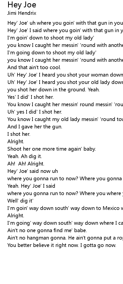 Hey' Joe' I said where you goin' with that gun in your hand? Alright. |