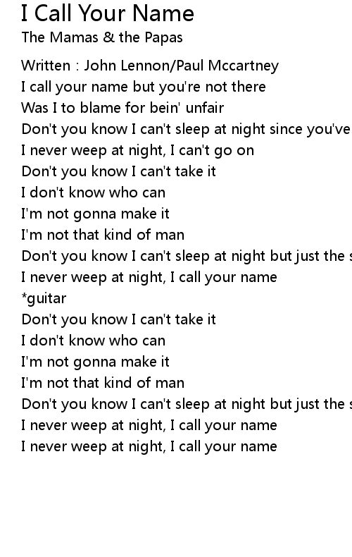 | Song | I Call Your Name |