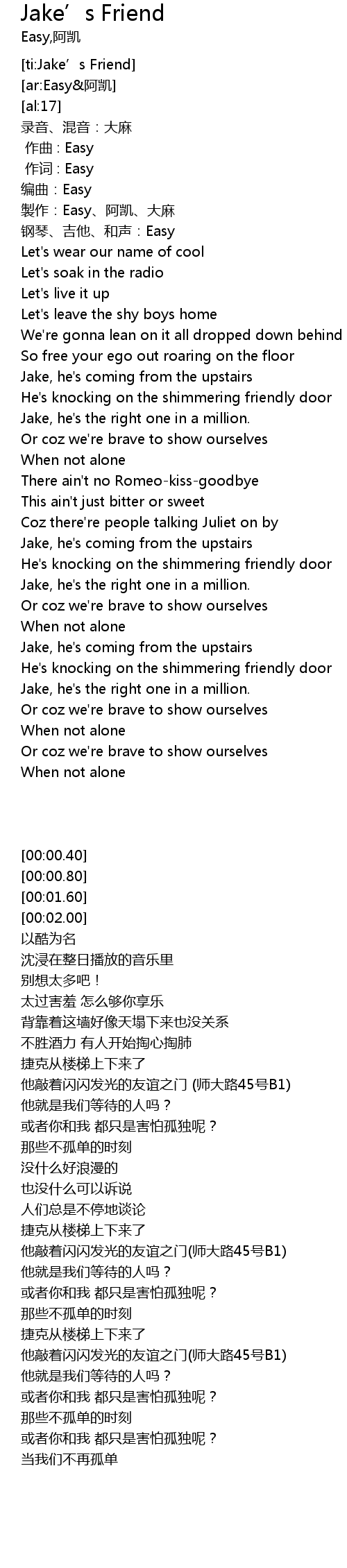 | [ti:Jake’s Friend] | |