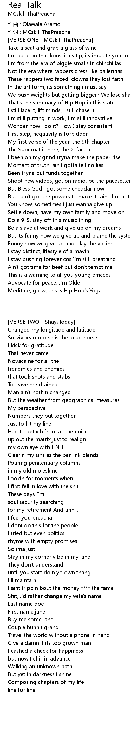 | 作词 : MCskill ThaPreacha | |