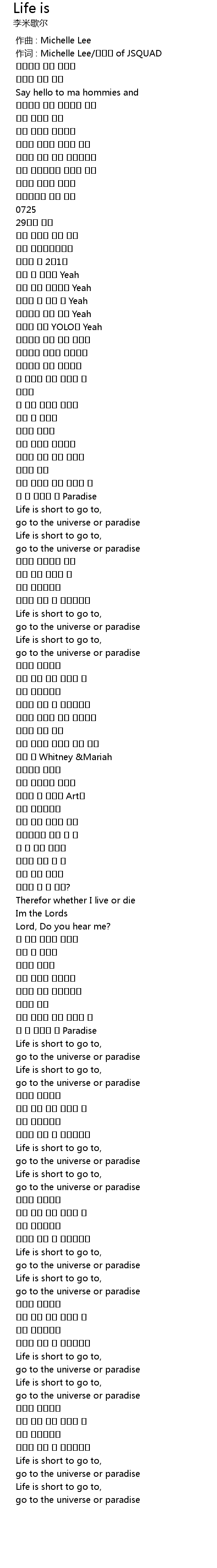 | [00:01.000] | 作词 : Michelle Lee/김용태 of JSQUAD |