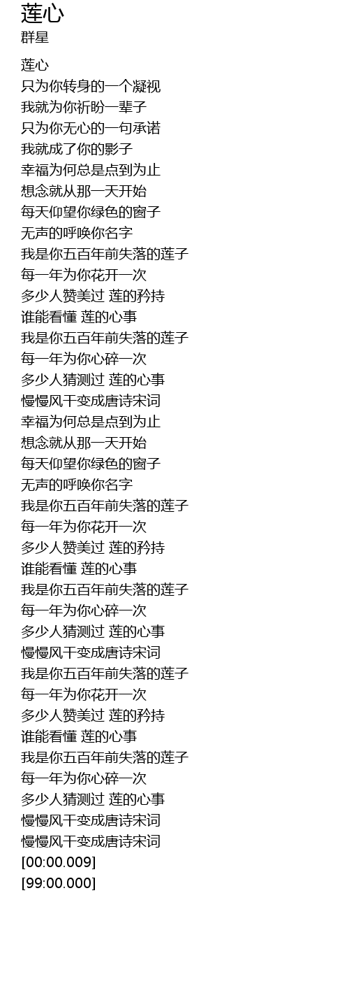 | [04:03.99] | 谁能看懂 莲的心事 |