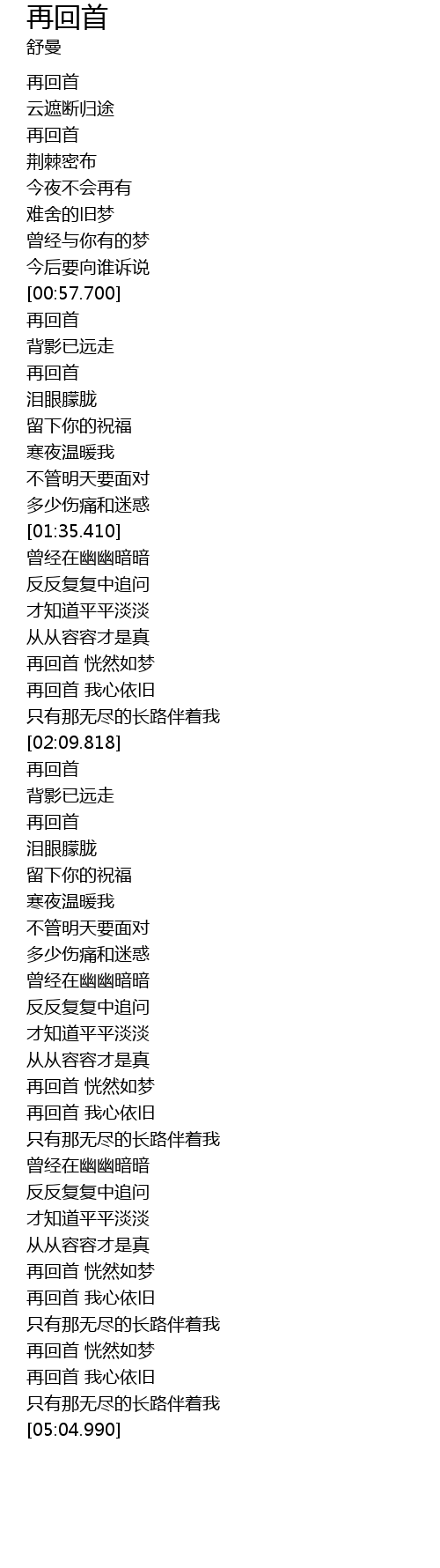 | [04:09.419] | zài huí shǒu wǒ xīn yī jiù |
