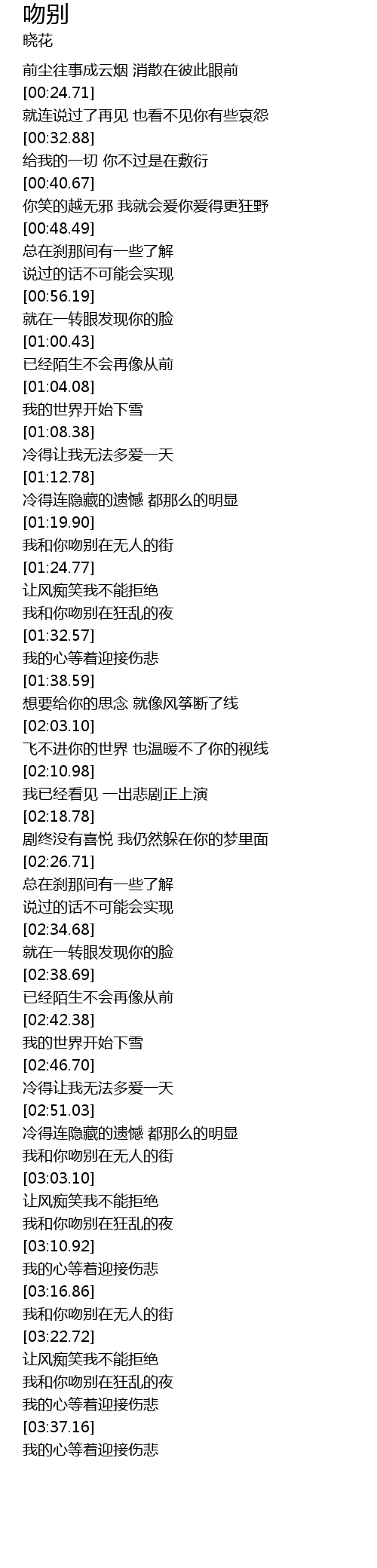 [03:18.73] wǒ hé nǐ wěn bié zài wú rén de jiē