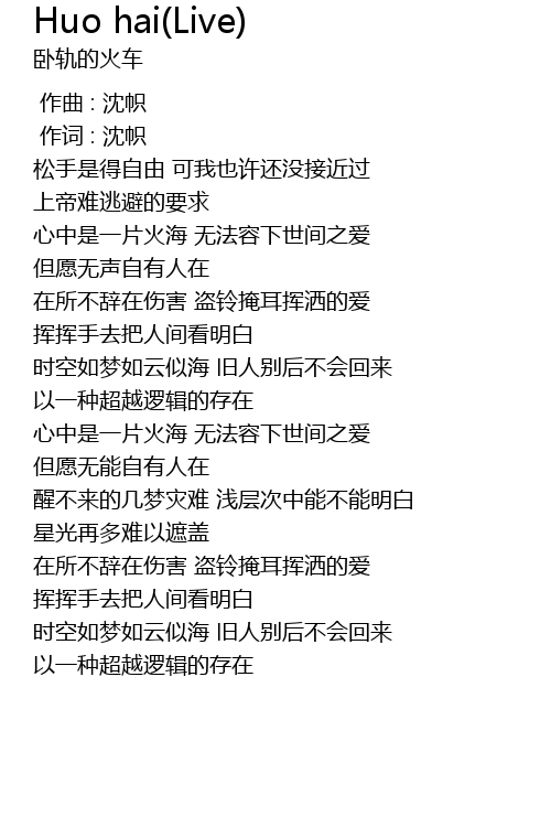 | [00:01.000] | 作词 : 沈帜 |