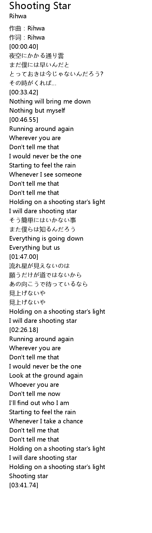 | [03:33.99] | Shooting star |