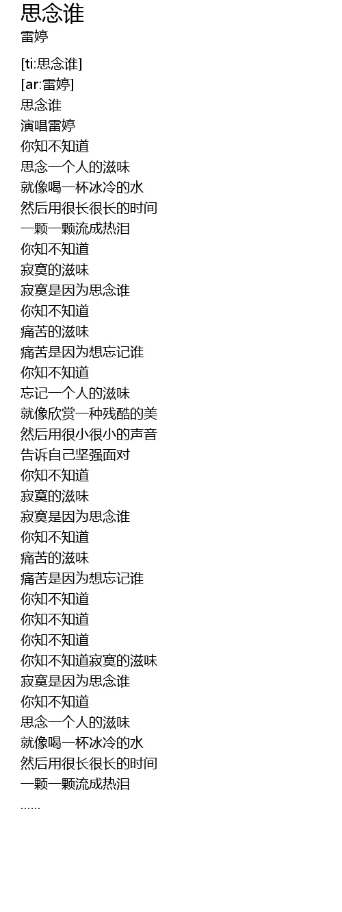 | [01:41.471] | 痛苦是因为想忘记谁 |
