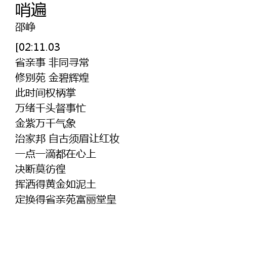| [01:58.72] | 定换得省亲苑富丽堂皇 |