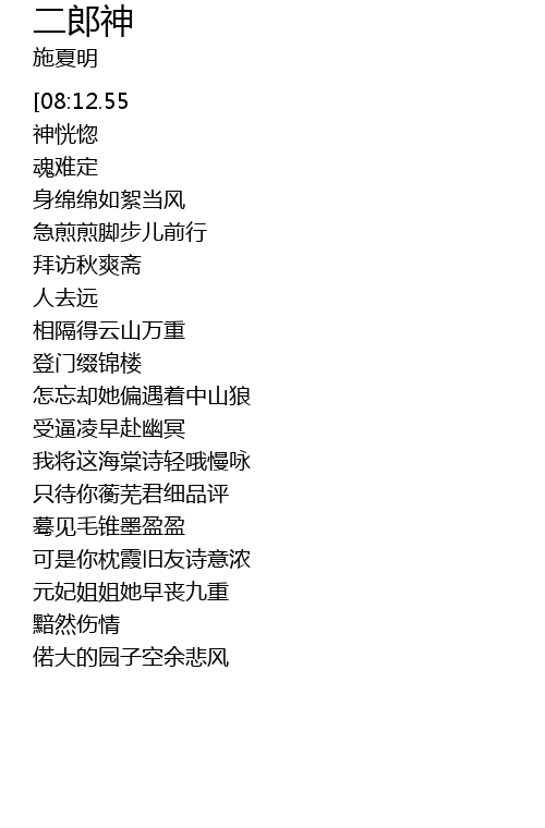 | [07:35.92] | 偌大的园子空余悲风 |