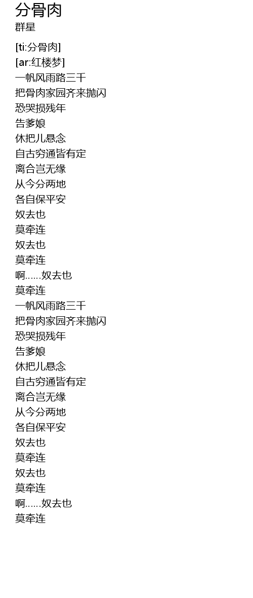 | [00:30.429] | bǎ gǔ ròu jiā yuán qí lái pāo shǎn |