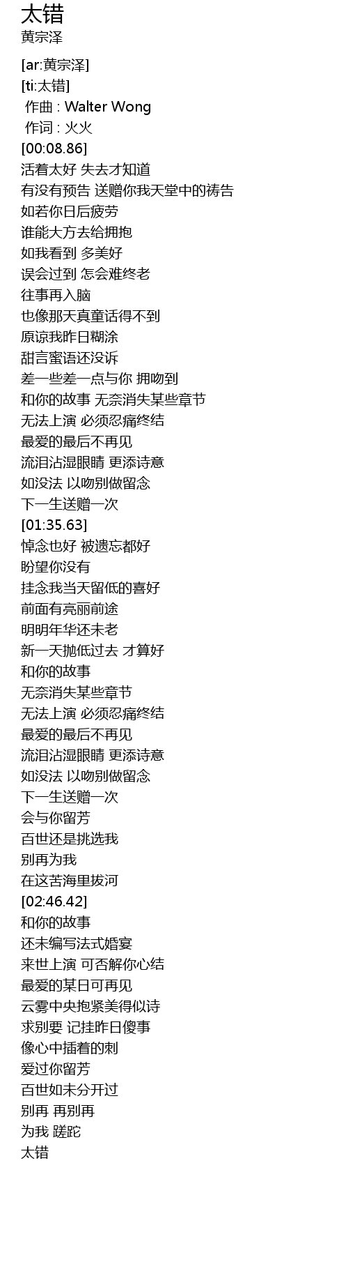 | [03:47.17] | 太错 |