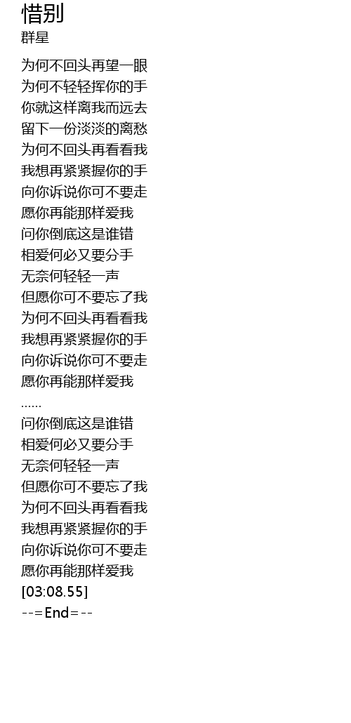| [00:15.41] | 为何不轻轻挥你的手 |