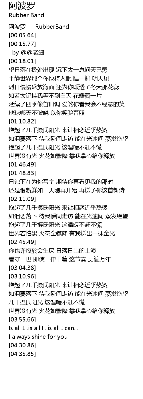 | [01:01.78] | 地球哪天不破晓 以你笑脸普照 |