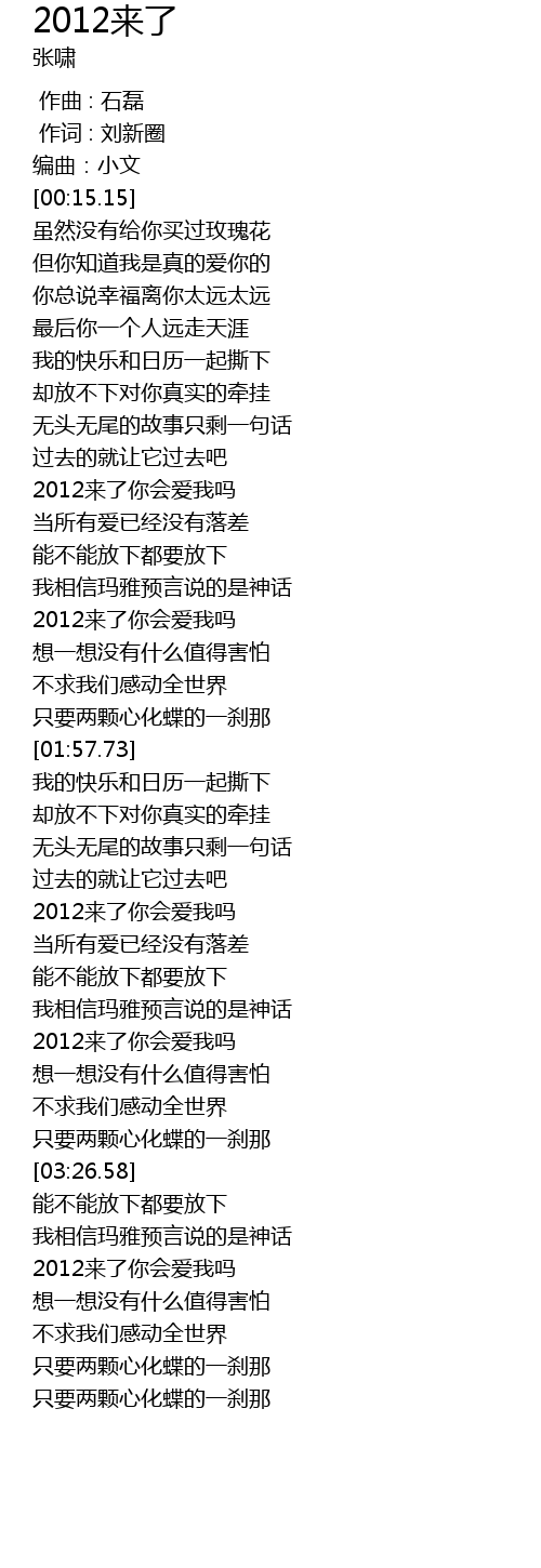| [02:59.63] | 2012来了你会爱我吗 |
