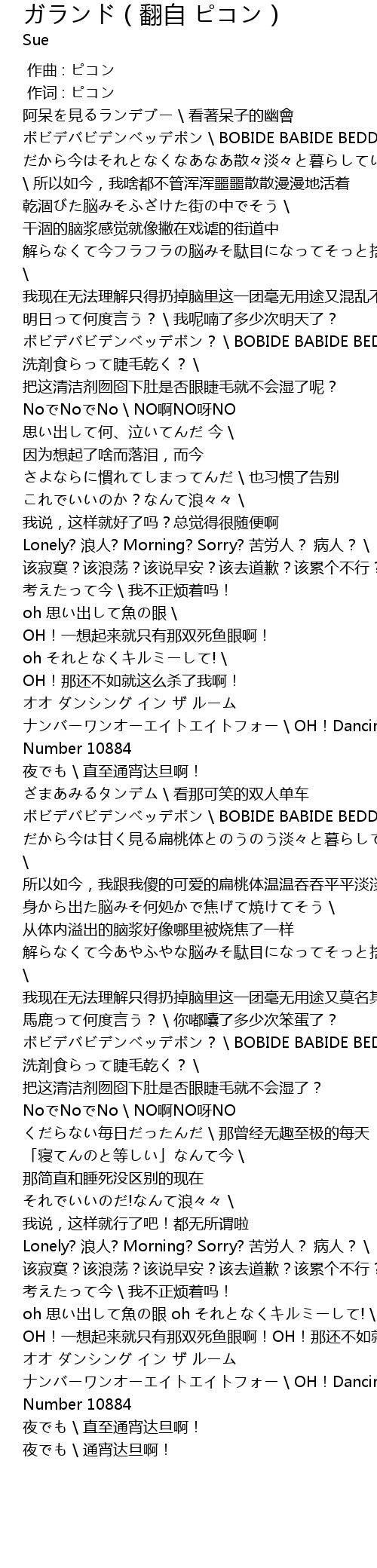 | [02:16.266] | oh 思い出して魚の眼 oh それとなくキルミーして! \ OH!一想起来就只有那双死鱼眼啊!OH!那还不如就这么杀了我啊! |