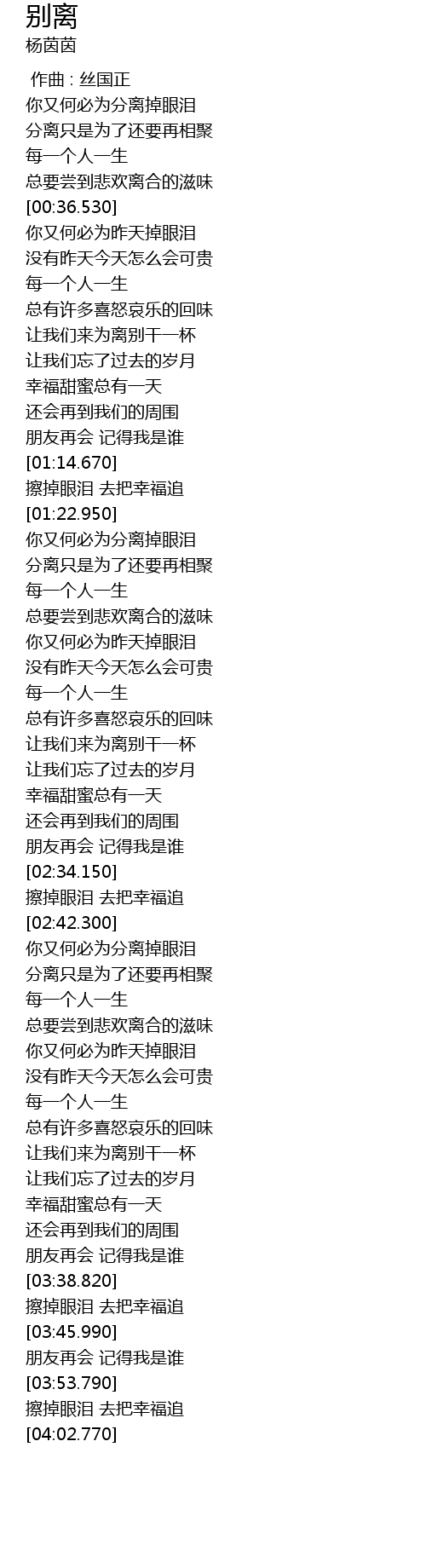 | [01:41.440] | nǐ yòu hé bì wèi fēn lí diào yǎn lèi |