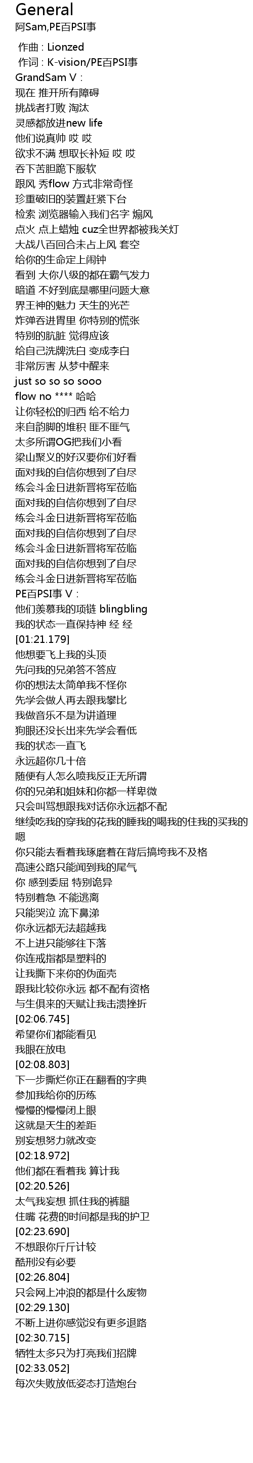 | [00:01.000] | 作词 : K-vision/PE百PSI事 |