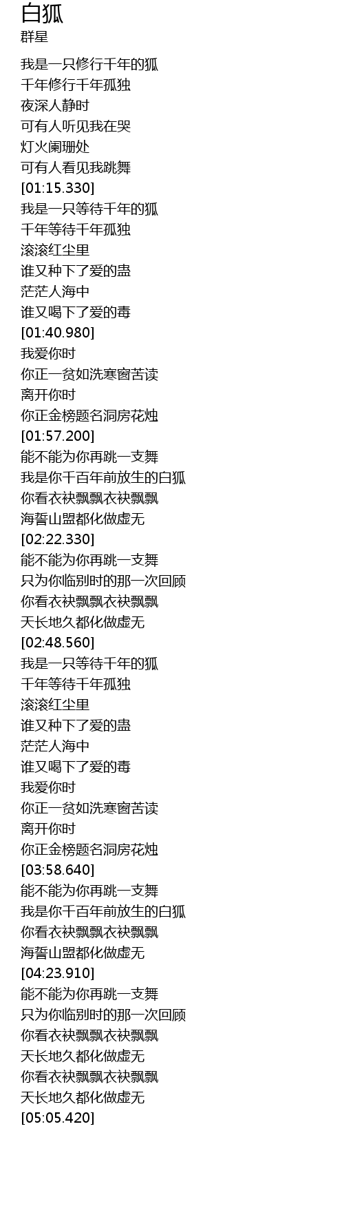 | [04:06.500] | 我是你千百年前放生的白狐 |