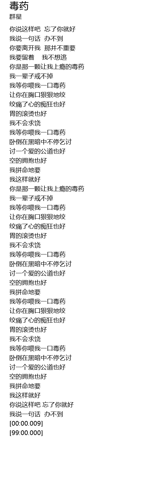 | [00:42.97] | 你是那一颗让我上瘾的毒药 |