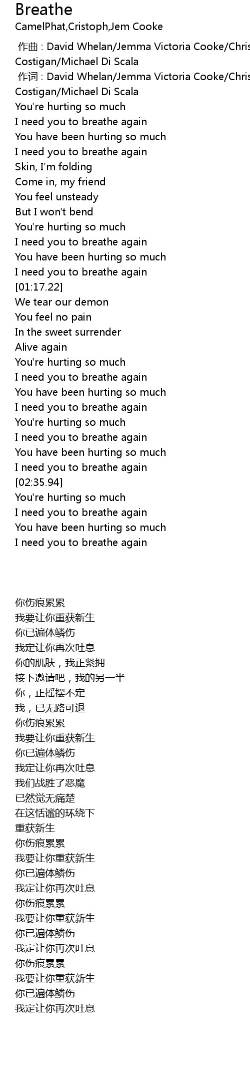 | [00:01.000] | zuò cí : David Whelan Jemma Victoria Cooke Christopher Costigan Michael Di Scala |