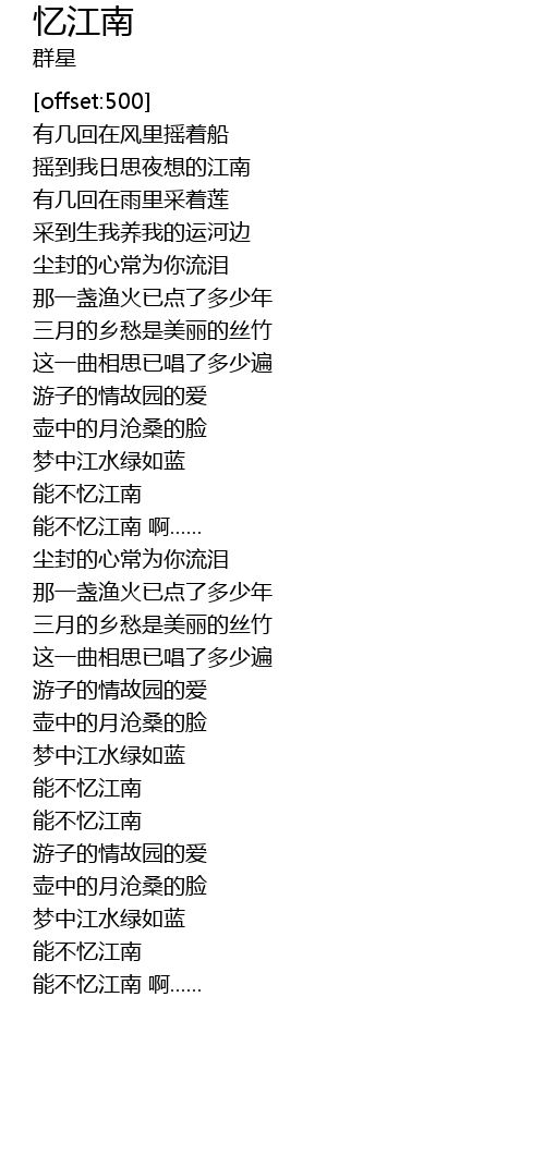 | [00:43.24] | 摇到我日思夜想的江南 |