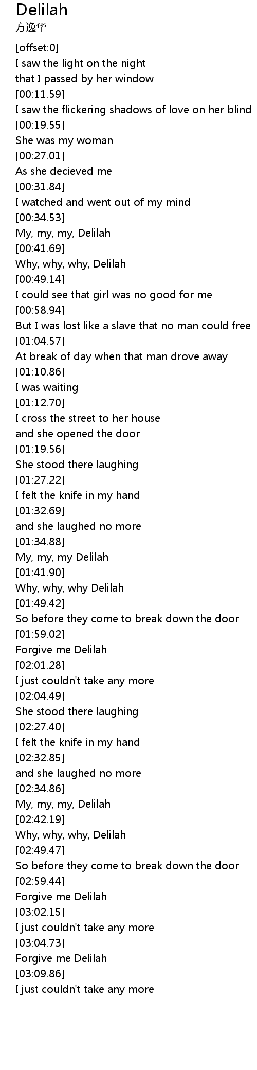 Why, why, why Delilah |