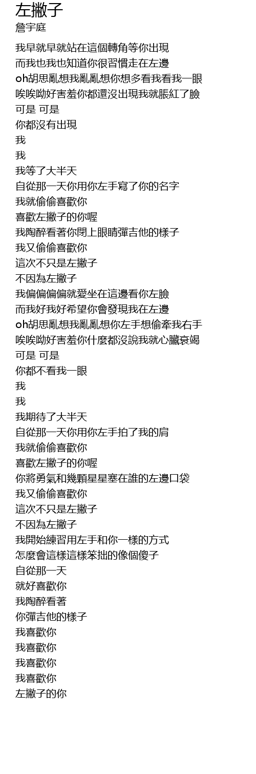 | [01:17.43] | 喜歡左撇子的你喔 |