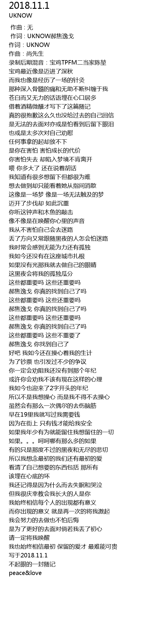 | [00:01.000] | 作词 : UKNOW郝焦逸戈 |