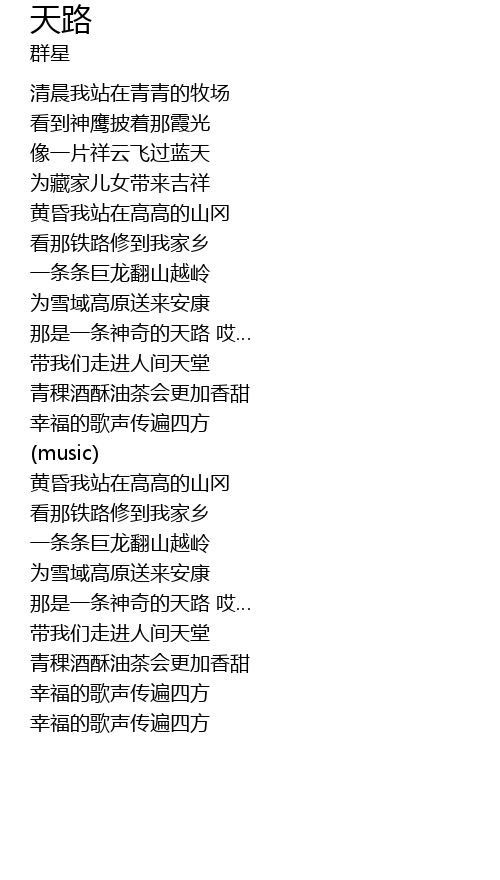 | [02:00.000] | 那是一条神奇的天路 哎… |