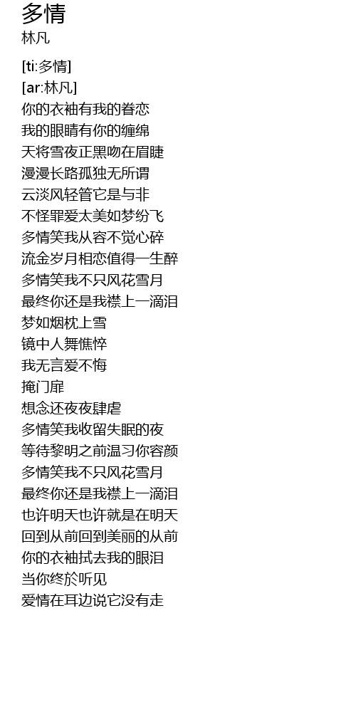 | [01:03.84] | 多情笑我从容不觉心碎 |