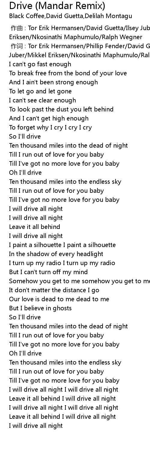 | [02:57.17] | I will drive all night I will drive all night |