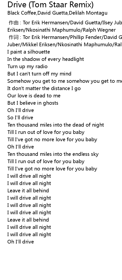 | [00:01.000] | zuò cí : Tor Erik Hermansen Phillip Fender David Guetta Ilsey Juber Mikkel Eriksen Nkosinathi Maphumulo Ralph Wegner |