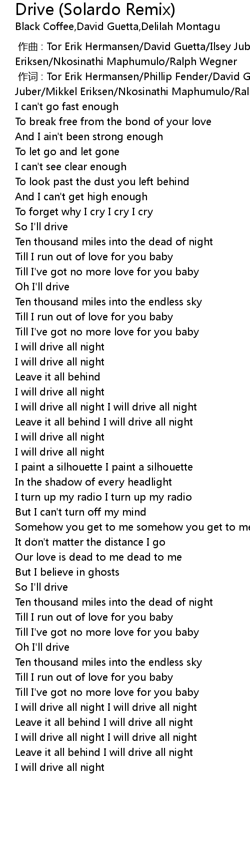 | [03:10.68] | I will drive all night I will drive all night |