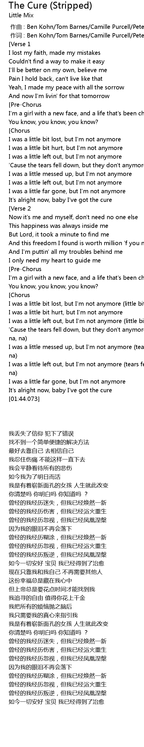 | [01:41.378] | It' s alright now, baby I' ve got the cure |