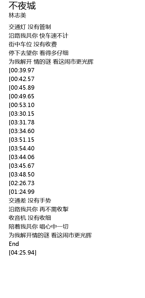 | [00:21.66] | 交通灯 没有管制 |