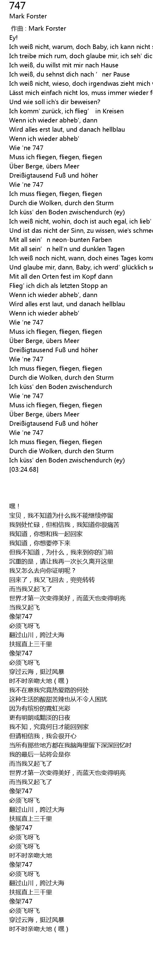 | [02:53.21] | Wie 'ne 747 |