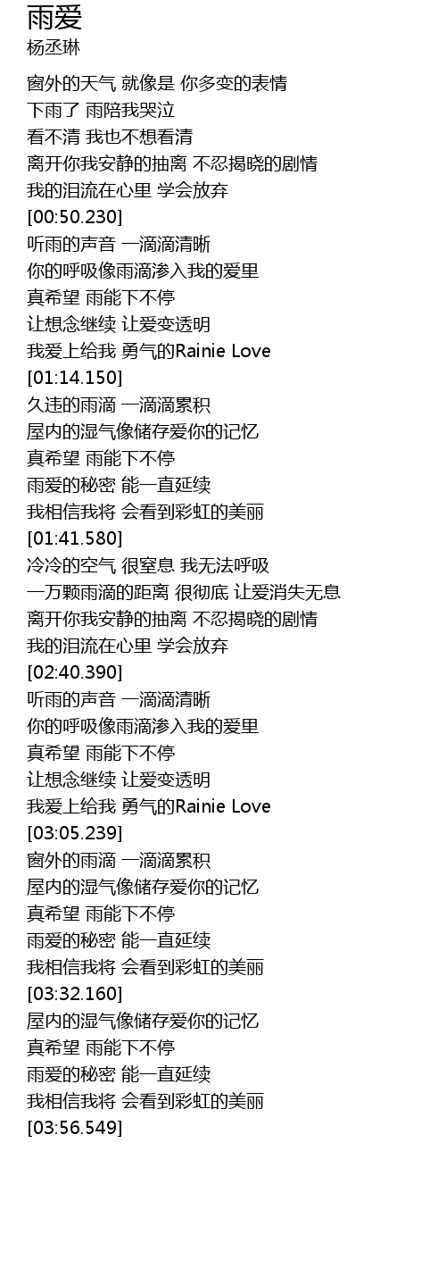 | [03:41.579] | 雨爱的秘密 能一直延续 |