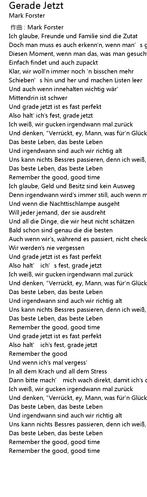 | [01:37.46] | Also halt' ich' s fest, grade jetzt |