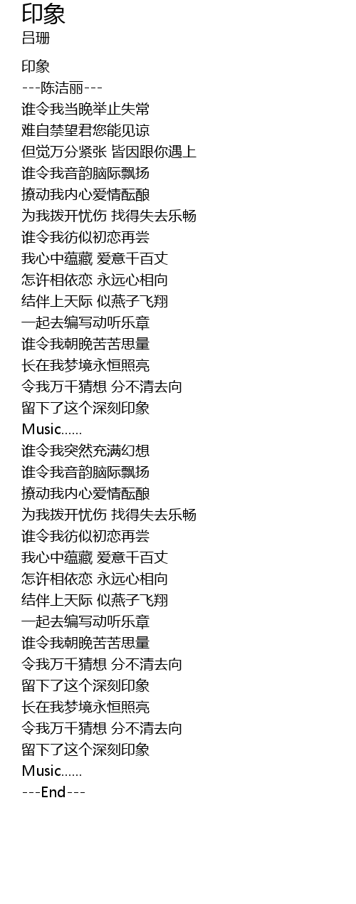 | [00:46.37] | 谁令我音韵脑际飘扬 |
