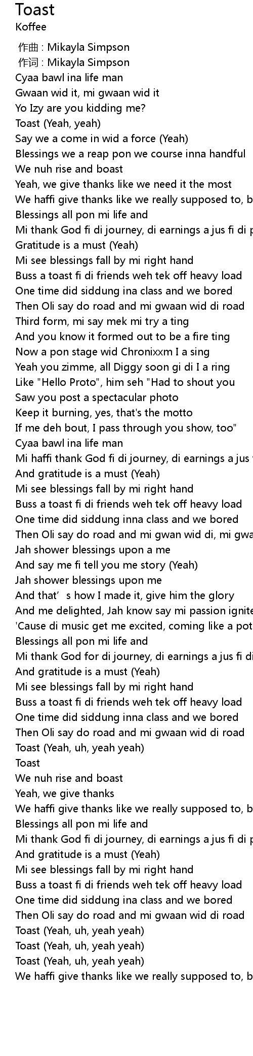 | [02:47.15] | Toast (Yeah, uh, yeah yeah) |