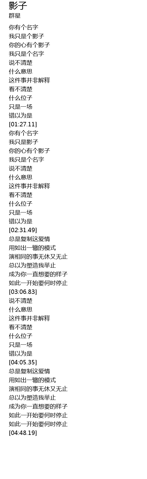 | [00:42.41] | 我只是个影子 |
