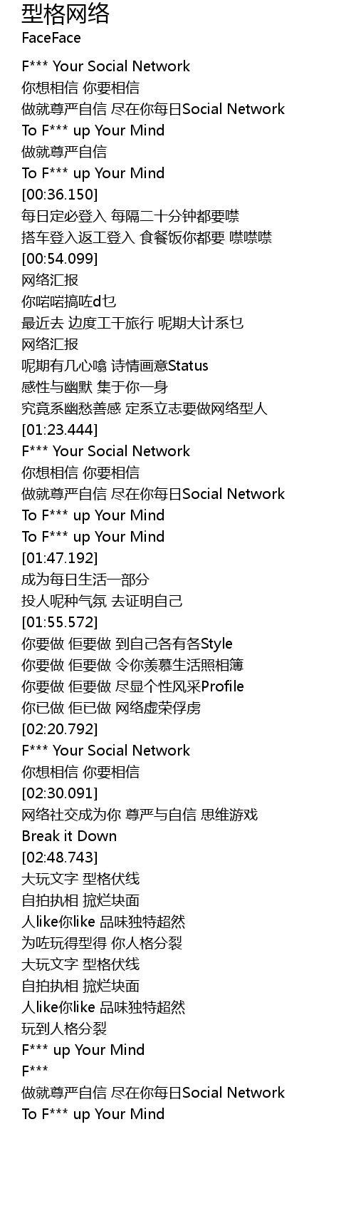 | [03:37.415] | zuò jiù zūn yán zì xìn jǐn zài nǐ měi rì Social Network |