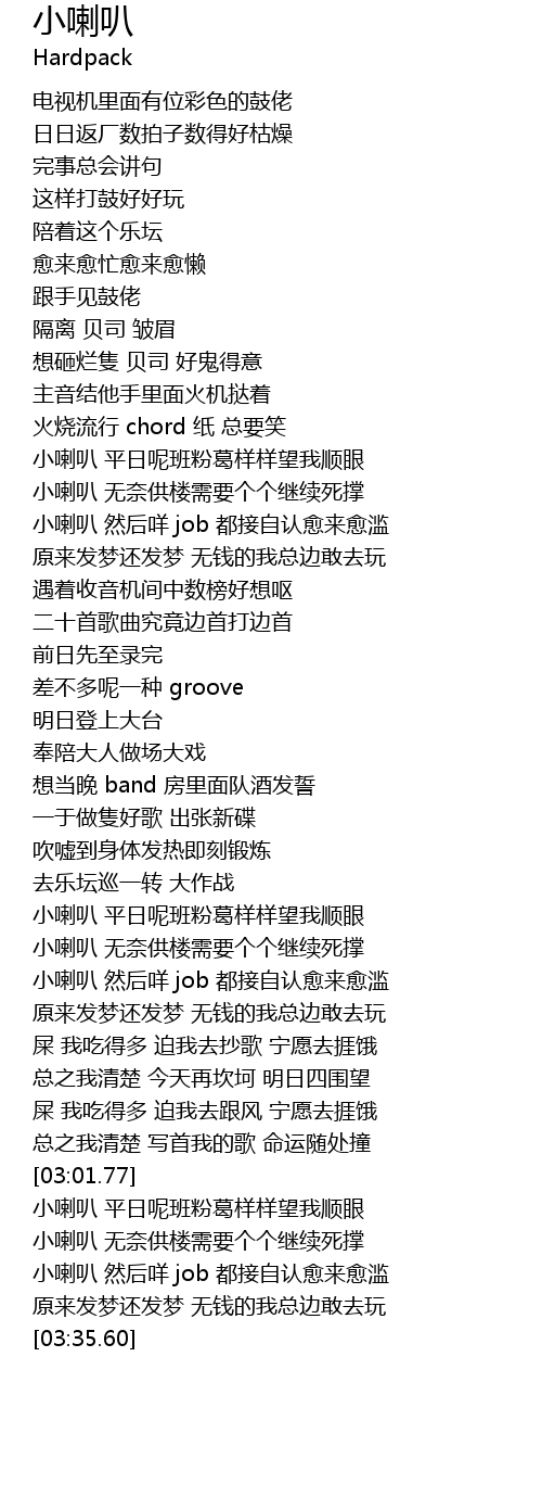 | [03:22.81] | 小喇叭 然后咩 job 都接自认愈来愈滥 |